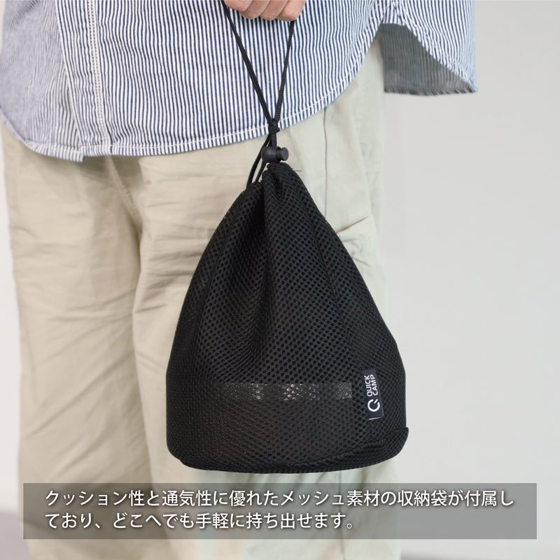 ・クッション性と通気性に優れたメッシュ素材の収納袋付き。