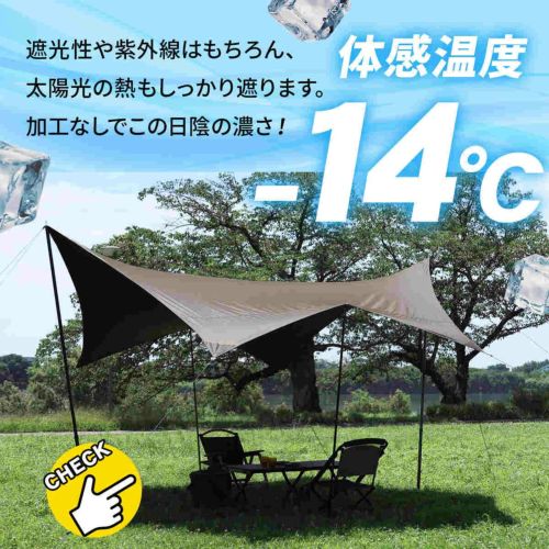 外遊びも快適に過ごせるブラックコーティングヘキサタープ。