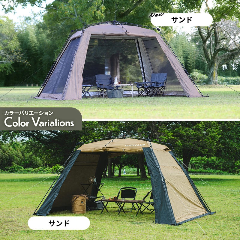 4m×2.8mの超ワイドサイズで大人数でも快適なワンタッチスクリーンタープ。