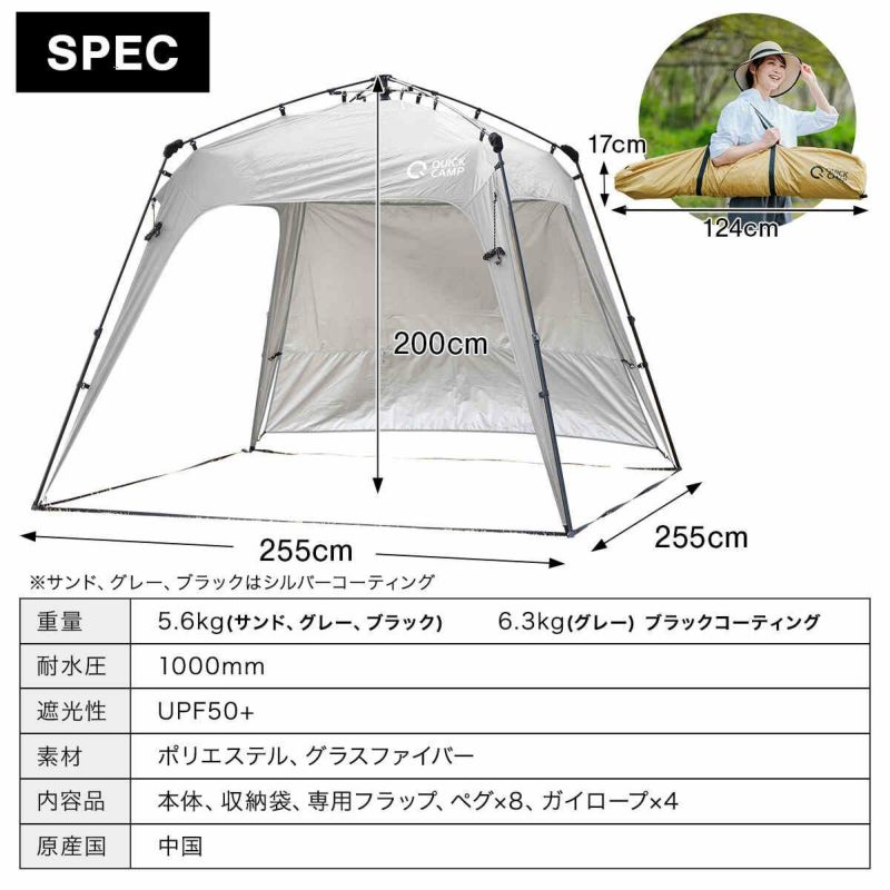 クイックキャンプ(QUICKCAMP) ワンタッチタープ 2.5m フラップ付き グレー/ブラックコーティング QC-TP250 GYBC