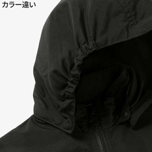 フードはスナップボタンで取り外しが可能で、外したときにはボタンを襟の中にしまうことができます。