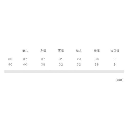80:着丈37、身幅37、肩幅31、袖丈29、裾幅36、袖口幅9 90:着丈40、身幅38、肩幅32、袖丈32、裾幅38、袖口幅9 |
