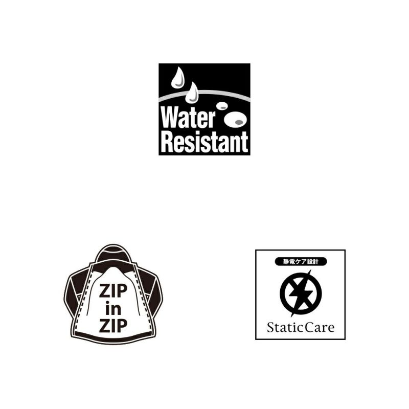 フロントファスナー、袖口と首元のスナップボタンでアウターを連結できるジップインジップシステムに対応。