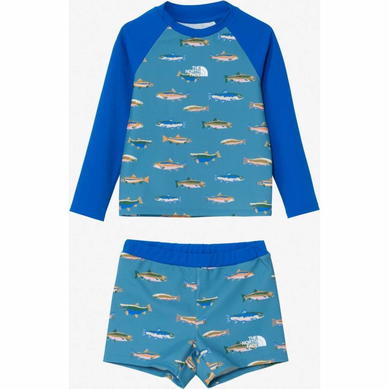 水辺の生き物やキャンプシーンをモチーフにした柄が楽しい、水辺でのアクティビティやキャンプに活躍する1着です。