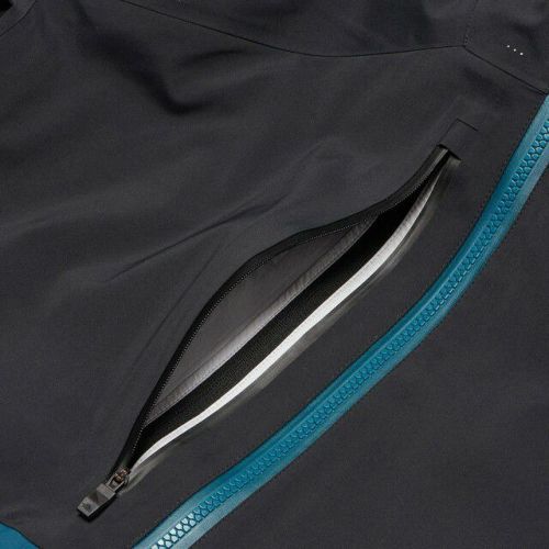 ジャケット表側には、小物の収納に便利な大型の胸ポケット、両脇のポケットは止水ファスナー仕様。