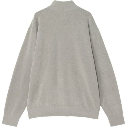 フリースジャケットのような軽量感と通気性が特徴のハーフジップのニットウエア。