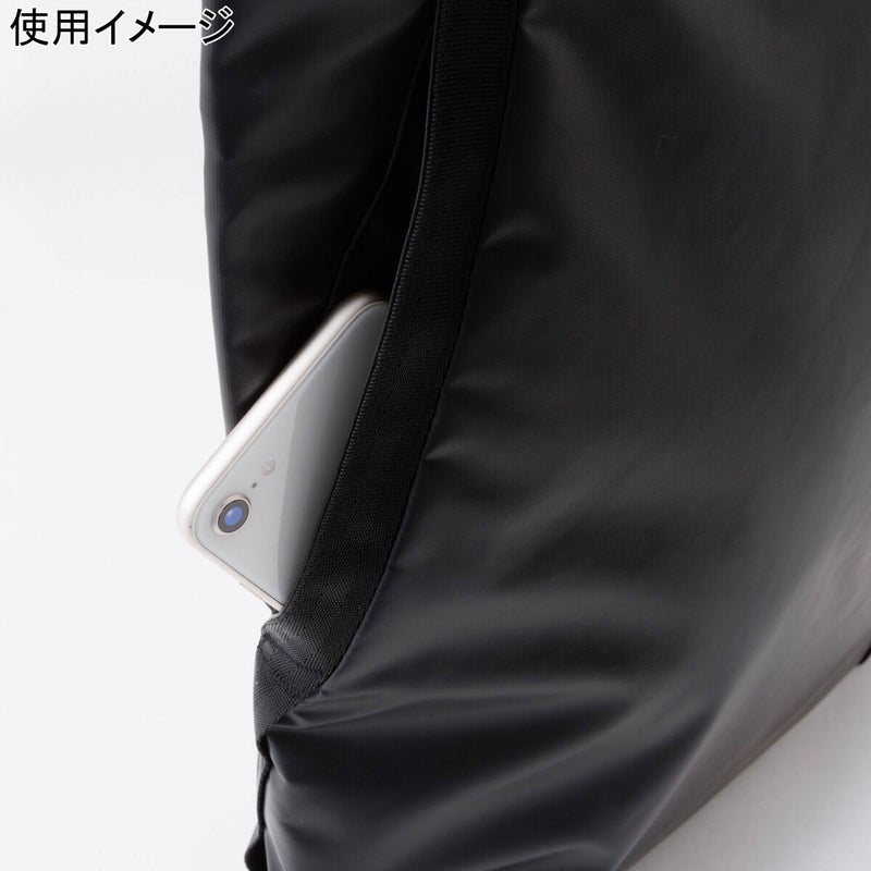 本体上部にはスマートフォンなどの小物の収納に便利なファスナー付きポケット、本体内部にはファスナー付きメッシュポケットとスリットポケットなど、シンプルなデザインに干渉しない多彩なポケットを備えます。