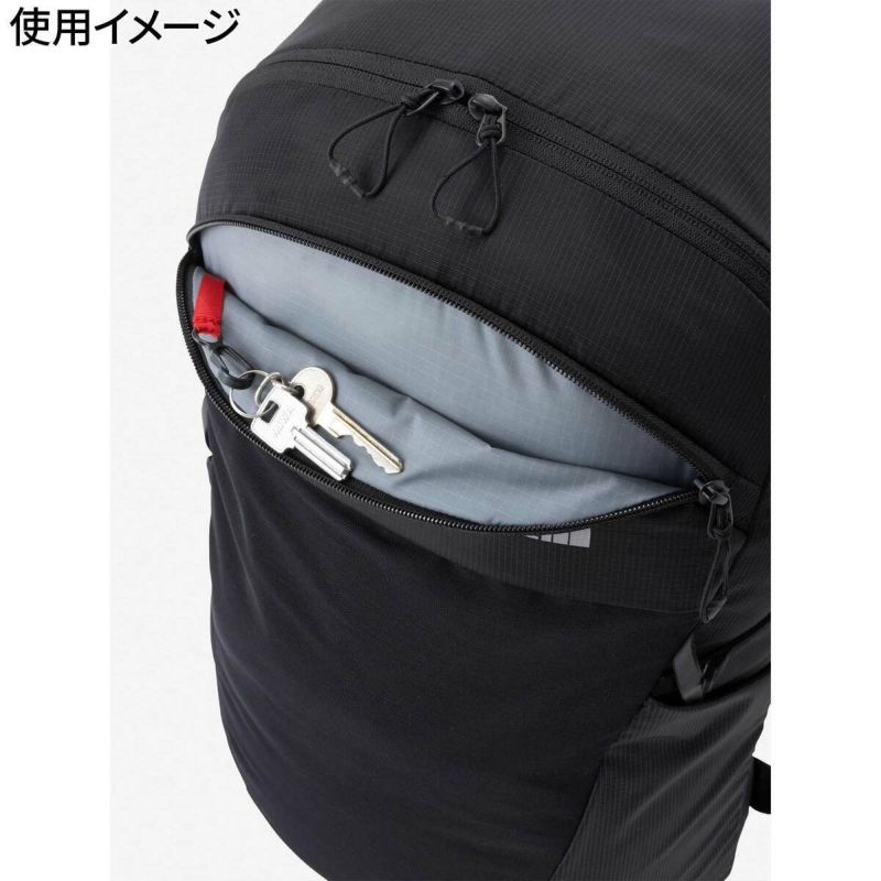 フロントにはジャケットなどをスムーズに収納できるストレッチポケット、大きめのボトルも収納できるサイドポケットなど十分な収納力を備えています。