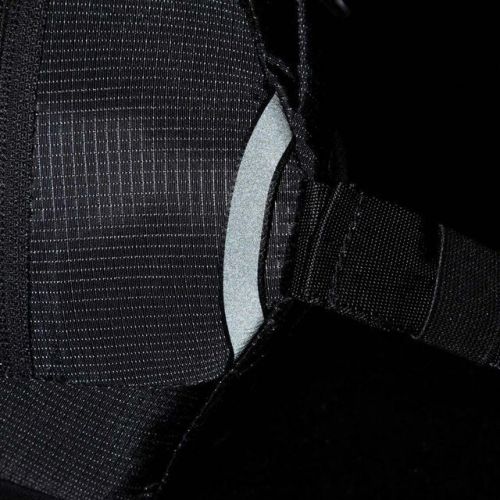 小物収納に便利なフロントポケット、ボトルや傘などの長物を収納できるボトム部のストレッチメッシュポケット、スマートフォンの収納に安心なセキュリティ性の高い背面のファスナー付きポケットなど十分な収納力を備えています。