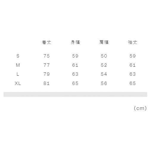 実寸サイズ(cm)S:着丈75、身幅59、肩幅50、袖丈59