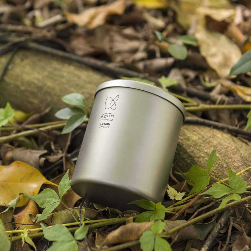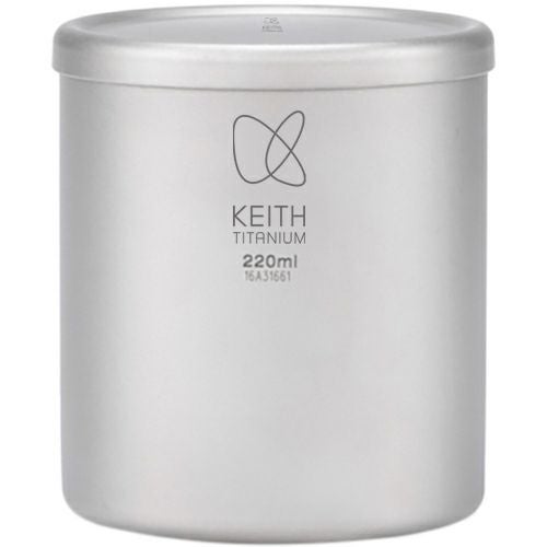 二層構造(ダブルウォール)を採用した、蓋付きの純チタン製カップです。