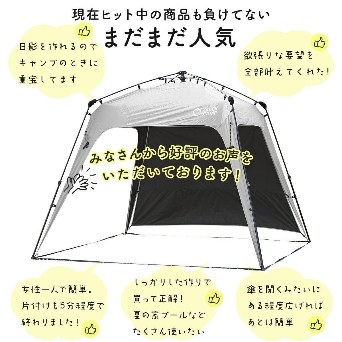 他の画像を見る 即納 クイックキャンプ(QUICKCAMP) ワンタッチタープ 2.5m フラップ付き グレー/ブラックコーティング QC-TP250 GYBC 販売価格 ¥ 13,990 税込 %OFF 詳細を見る お気に入り登録