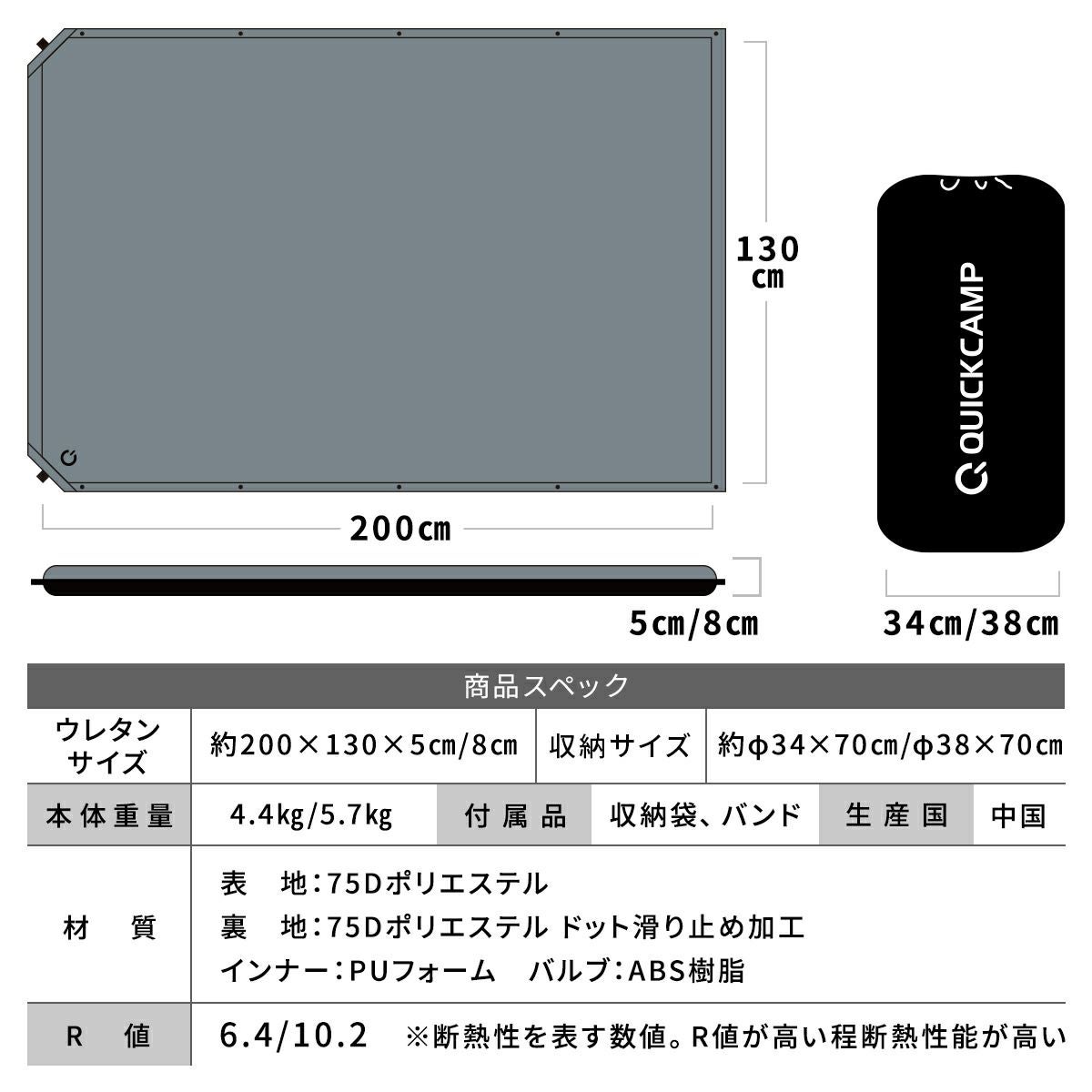 他の画像を見る 即納 再入荷 クイックキャンプ(QUICKCAMP) 車中泊マット 8cm シングル アウトドア ベッド グレー QC-CM8.0 GY 販売価格 ¥ 6,480 税込 %OFF 車中泊やオートキャンプに最適な極厚8cmキャンピングマットが新登場! 詳細を見る お気に入り登録
