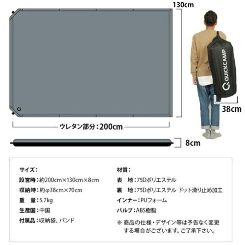 他の画像を見る 即納 再入荷 クイックキャンプ(QUICKCAMP) 車中泊マット 5cm シングル グレー QC-CM5.0 計2枚セット 販売価格 ¥ 7,961 税込 〜 販売価格 ¥ 税込 %OFF すぐ膨らむインフレータブルマット5cm厚サイズがクイックキャンプから新登場! 詳細を見る お気に入り登録