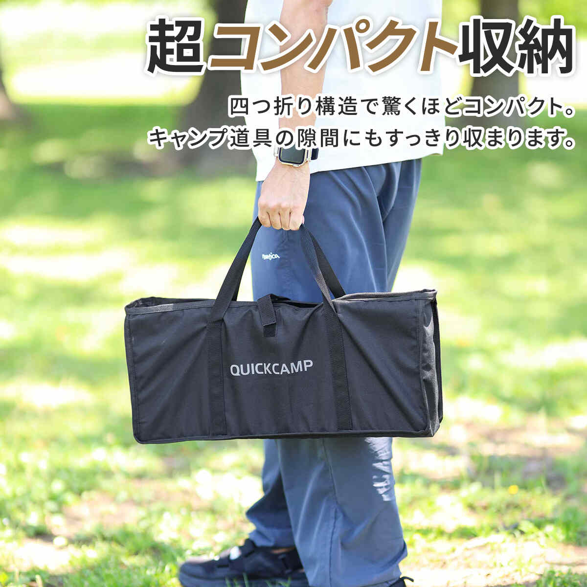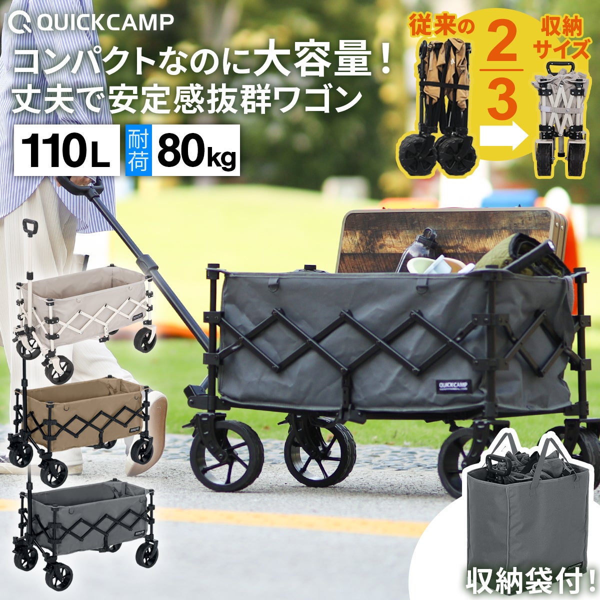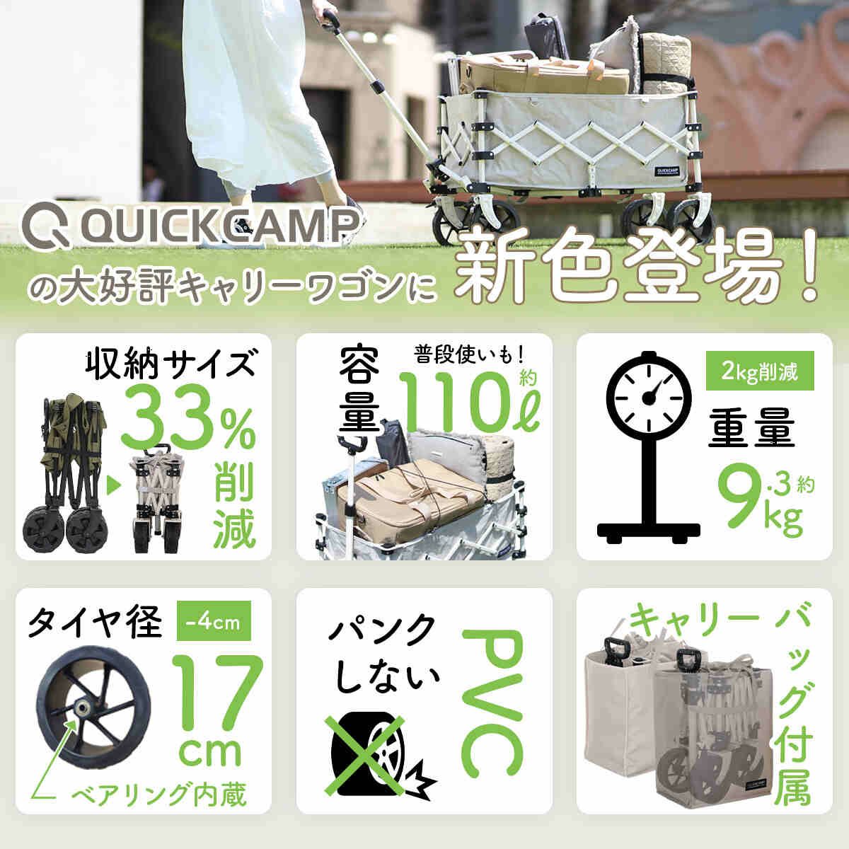 他の画像を見る 即納 クイックキャンプ(QUICKCAMP) ケース付き アウトドアワゴン キャリーカート QC-CW80 販売価格 ¥ 8,980 税込 〜 販売価格 ¥ 税込 %OFF 沢山積めるのにコンパクト収納。車のトランクや倉庫が汚れない、タイヤまですっぽり保護するキャリーバッグ型収納袋付き。 詳細を見る お気に入り登録