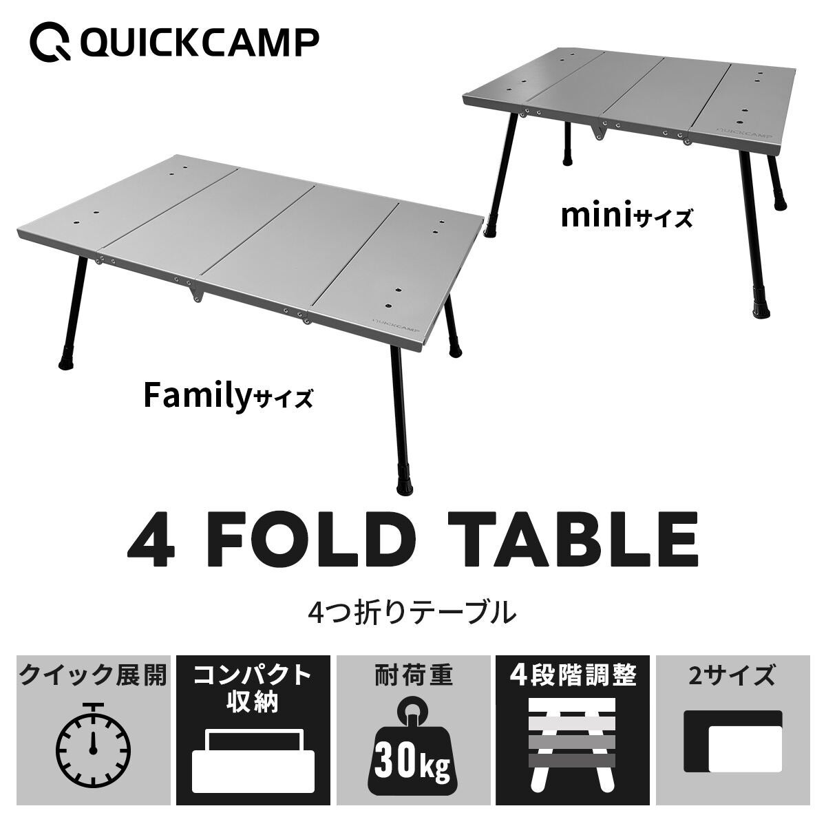 他の画像を見る 即納 クイックキャンプ(QUICKCAMP) 4つ折りテーブル mini シルバー QC-4FT60 販売価格 ¥ 7,920 税込 %OFF 収納上手はキャンプ上手!折りたたみ式でかさばる問題を一発解決。シーンに合わせて4段階高さ調整可能な万能テーブル。 詳細を見る お気に入り登録
