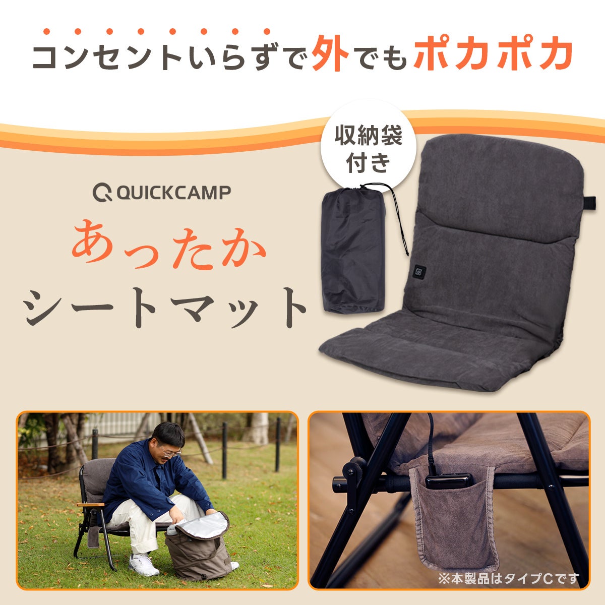 他の画像を見る 即納 クイックキャンプ(QUICKCAMP) [訳あり] あったかシートマット QC-HCS-T 販売価格 ¥ 6,480 税込 %OFF もう冷えない!椅子に付けるだけで全身じんわり、万能電熱クッションシート。オフィスも車もアウトドアも、3段階調整でぽかぽか快適。 詳細を見る お気に入り登録