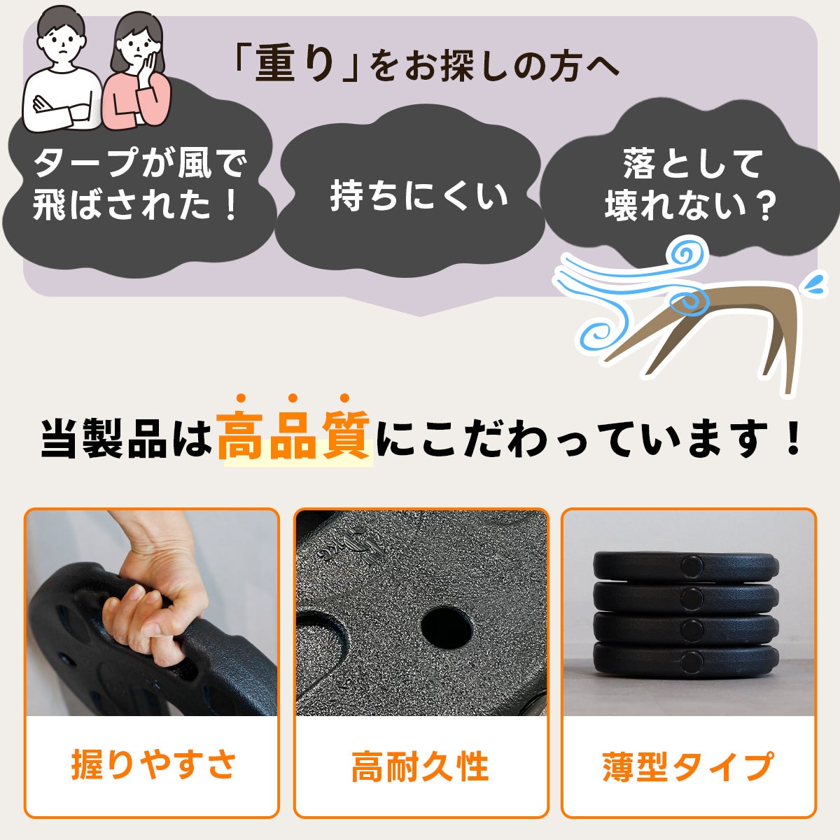 他の画像を見る 即納 NEW クイックキャンプ(QUICKCAMP) マルチウエイト5kg×4枚セット アウトドア ブラック QC-MW5 BK 販売価格 ¥ 4,290 税込 %OFF 持ち手や使用用途広がる構造で、マルチな活躍をしてくれるセメントウエイト 詳細を見る お気に入り登録