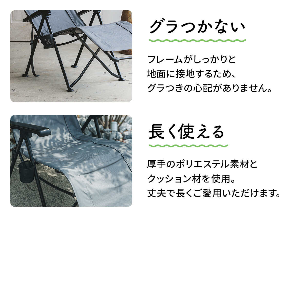 他の画像を見る 在庫切れ 即納 クイックキャンプ(QUICKCAMP) [訳あり] リクライニングチェア グレー QC-RC120-T 販売価格 ¥ 7,480 税込 %OFF 重力を忘れるような心地よさ。自由自在なリクライニングで、アウトドアのくつろぎを無限大に。コンパクトに収納できる収束フレームで、どこでも手軽にリラックス。 詳細を見る お気に入り登録