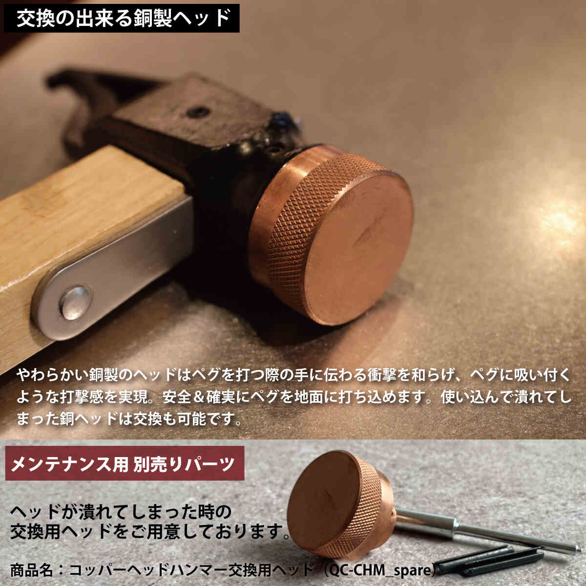 他の画像を見る 即納 クイックキャンプ(QUICKCAMP) [訳あり] コッパーヘッドハンマー 銅製ヘッド 本革ストラップ付き サンド QC-CHM-T SD 販売価格 ¥ 2,290 税込 %OFF 銅製ヘッドが、ペグに吸いつくような打撃感を実現。ヘッド交換可能で、大切に長く使える『コッパーヘッドハンマー』が新登場。 詳細を見る お気に入り登録