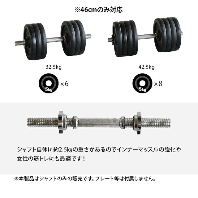 他の画像を見る 在庫切れ 即納 リーディングエッジ(LEADING EDGE) ダンベルシャフト ロング 46cm シルバー LE-DS46L SV 販売価格 ¥ 2,800 税込 %OFF 46cmのロングシャフトで、より柔軟なウェイトバリエーションを実現。最大で40kg(推奨重量)までのプレート取り付けに対応します。 詳細を見る お気に入り登録