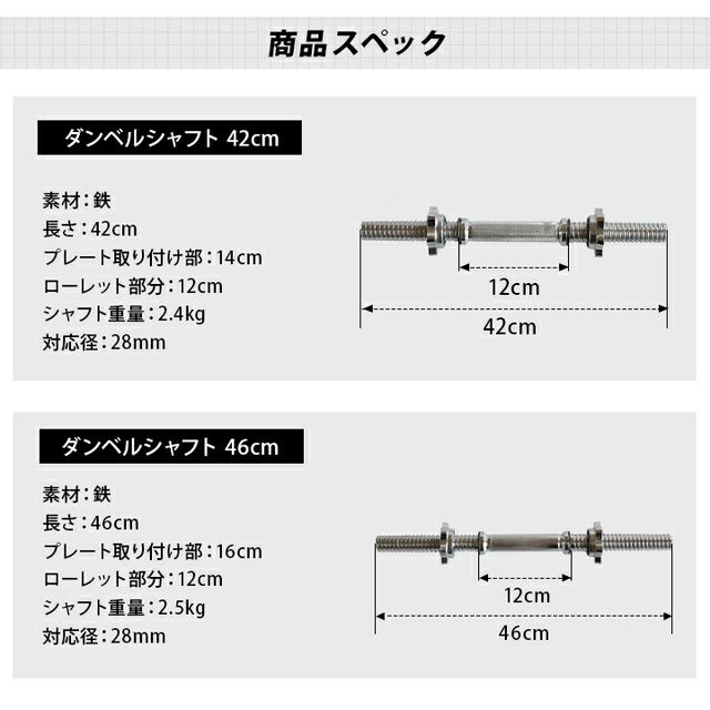 他の画像を見る 在庫切れ 即納 11/10まで5%OFFクーポン リーディングエッジ(LEADING EDGE) ダンベルシャフト ロング 42cm シルバー LE-DS42 SV 販売価格 ¥ 2,370 税込 %OFF 42cmのロングシャフトで、より柔軟なウェイトバリエーションを実現。最大で30kg(推奨重量)までのプレート取り付けに対応します。 詳細を見る お気に入り登録