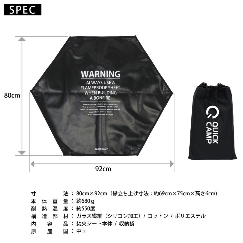他の画像を見る 即納 クイックキャンプ(QUICKCAMP) 焚き火シート スパッタシート 六角形 焚火台 ブラック QC-FS90 BK 販売価格 ¥ 2,780 税込 %OFF 5.00 フィールドを傷めず安心して使える焚き火シート 詳細を見る お気に入り登録