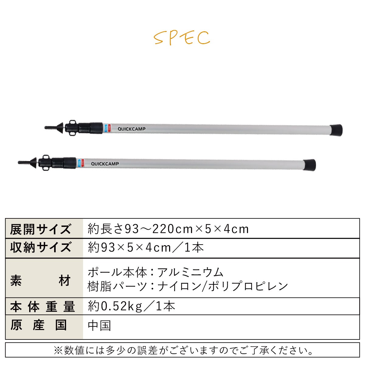 他の画像を見る 在庫切れ 即納 クイックキャンプ(QUICKCAMP) アルミメインポール MAIN POLE(ALUMINUM) QC-AP220 販売価格 ¥ 4,490 税込 %OFF 詳細を見る お気に入り登録